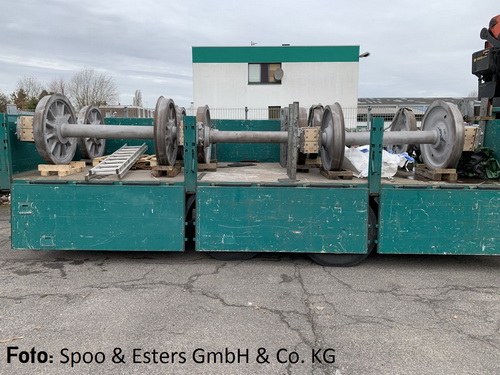 Die Radsätze stehen vor der Lok und warten darauf wieder an ihren angestammten Platz zu kommen: