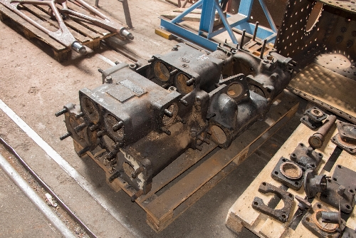 Die ausgebauten Schieber sowie zwei neuwertige Schieberkörper als Ersatz. Die Ersatzschieberkörper wurden damals 1974 mit der Lok mit nach England gegeben, als hätte man geahnt, dass die Lok irgendwann wieder in Betrieb geht...: