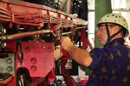 Kolbenstangen, Zapfen und Achswellen und der Stangensatz der Lokomotive wurden mittlerweile rissgeprüft und für gut befunden: