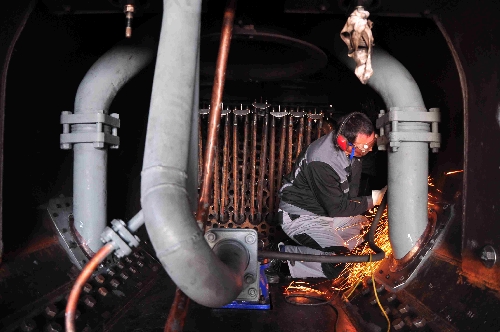 Seitens EWK geht auch die Aufarbeitung der Speise- und der Luftpumpe sowie der Einströmrohre voran: