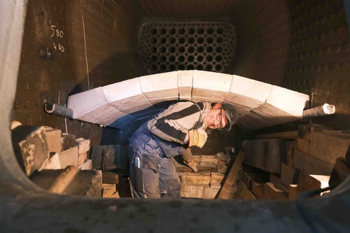 Es wurden weitere Steine für Ausmauerung und Feuerschirm gegossen sowie die bereits gegossenen Steine (2,8 Tonnen Material!) im Ofen gebrannt: