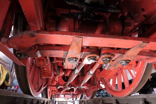 Blick auf die Achslager der Lokomotive, die sich erstaunlicherweise, zumindest auf den ersten Blick, noch in gutem Zustand befinden: