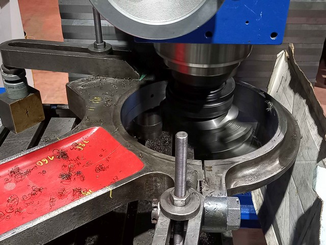 Anbei wieder ein paar Aktuelle Bilder. Durch die Eisenbahnwerkstätten Krefeld wird die rechte Schieberbuchse ausgedreht: