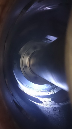Auch der linke Zylinder muss ausgedreht werden, die Laufbahn des Kolbens ist riefig: